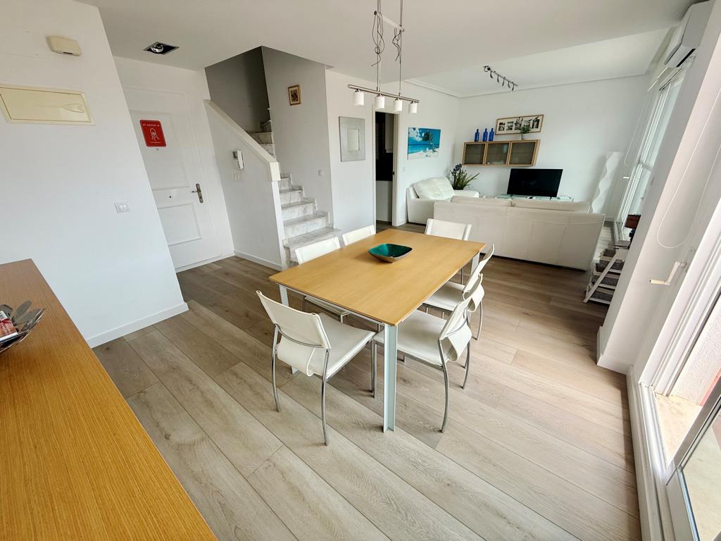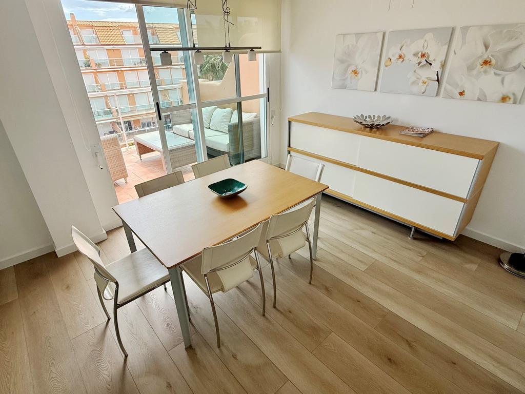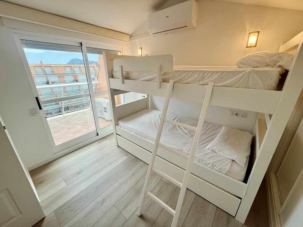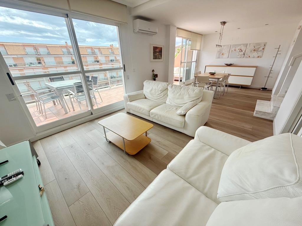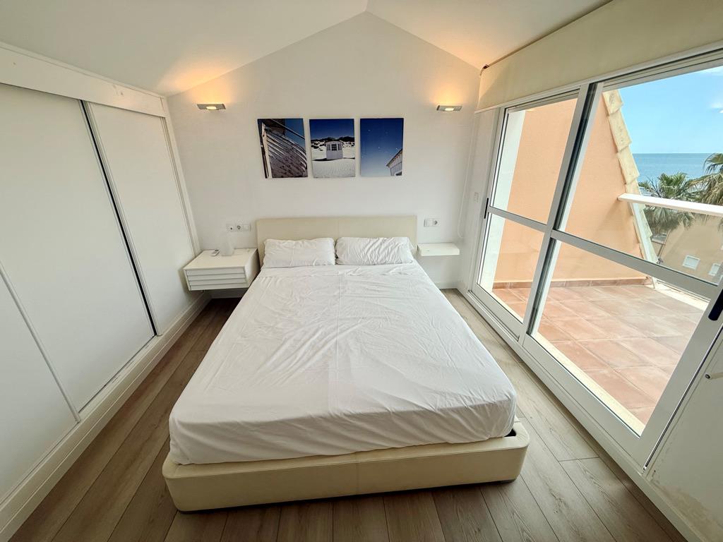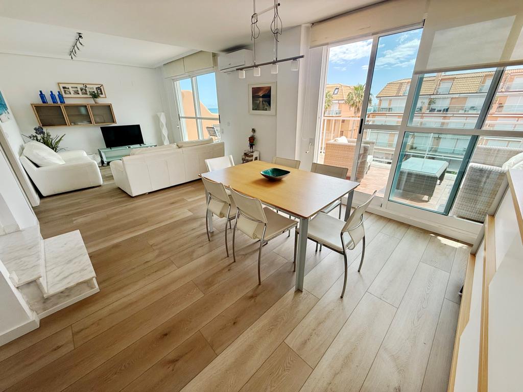 Ático en primera línea de playa con vistas al mar. Muy bien situado en complejo muy valorado por los turistas. Todo exterior. Moderno. Muy equipado. Grandes terrazas. Garaje. Piscina comunitaria abierta todo el año. Jardín muy cuidado. Zona de juego para niños. Acceso directo a la playa de arena fina. Zona muy tranquila. Mucha privacidad en la playa. Ideal para familias. Todos los servicios cerca: restaurantes, supermercados. Situado en la famosa playa de las marinas muy cerca de Denia. Línea regular de autobús para ir a Denia.