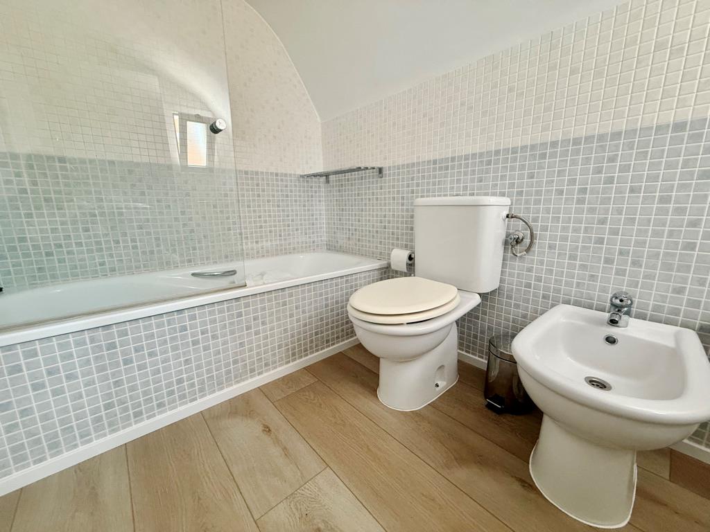 • cuarto de baño con lavabo, bañera, bidet, inodoro y secadora de pelo