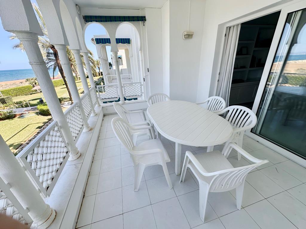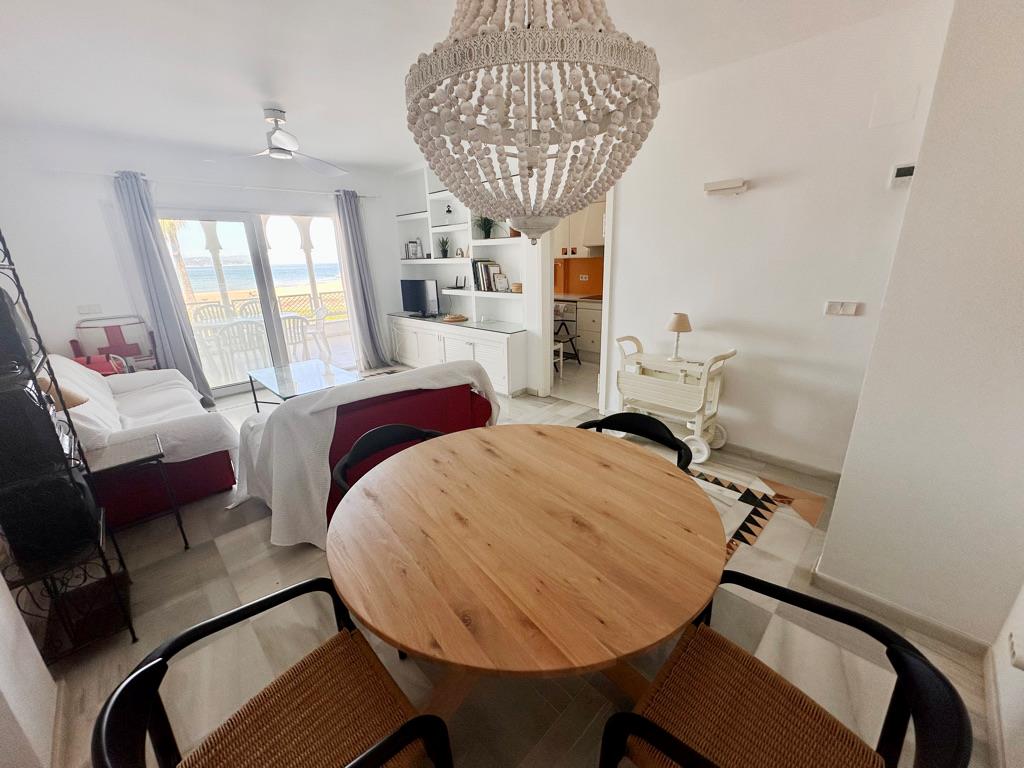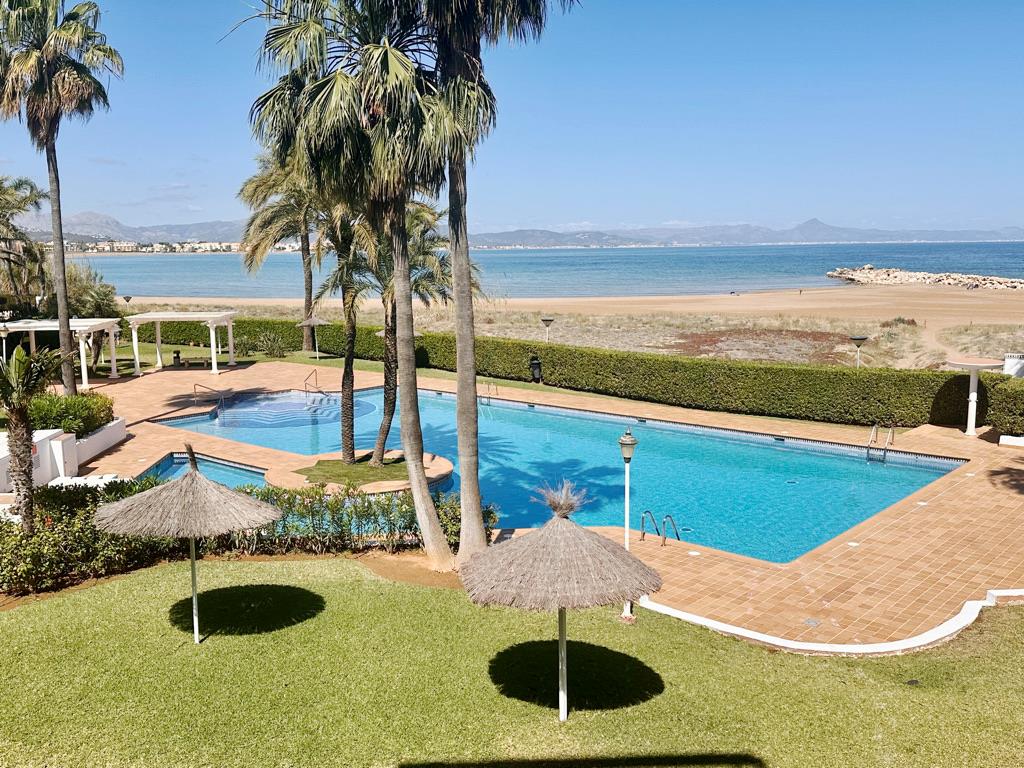 Apartamento en primera línea de playa con vistas al mar. Muy bien situado en complejo muy valorado por los turistas. Todo exterior. Moderno. Muy equipado. Grandes terrazas. Garaje. Piscina comunitaria abierta todo el año. Jardín muy cuidado. Zona de juego para niños. Acceso directo a la playa de arena fina. Zona muy tranquila. Mucha privacidad en la playa. Ideal para familias. Todos los servicios cerca: restaurantes, supermercados. Situado en la famosa playa de las marinas muy cerca de Denia. Línea regular de autobús para ir a Denia.