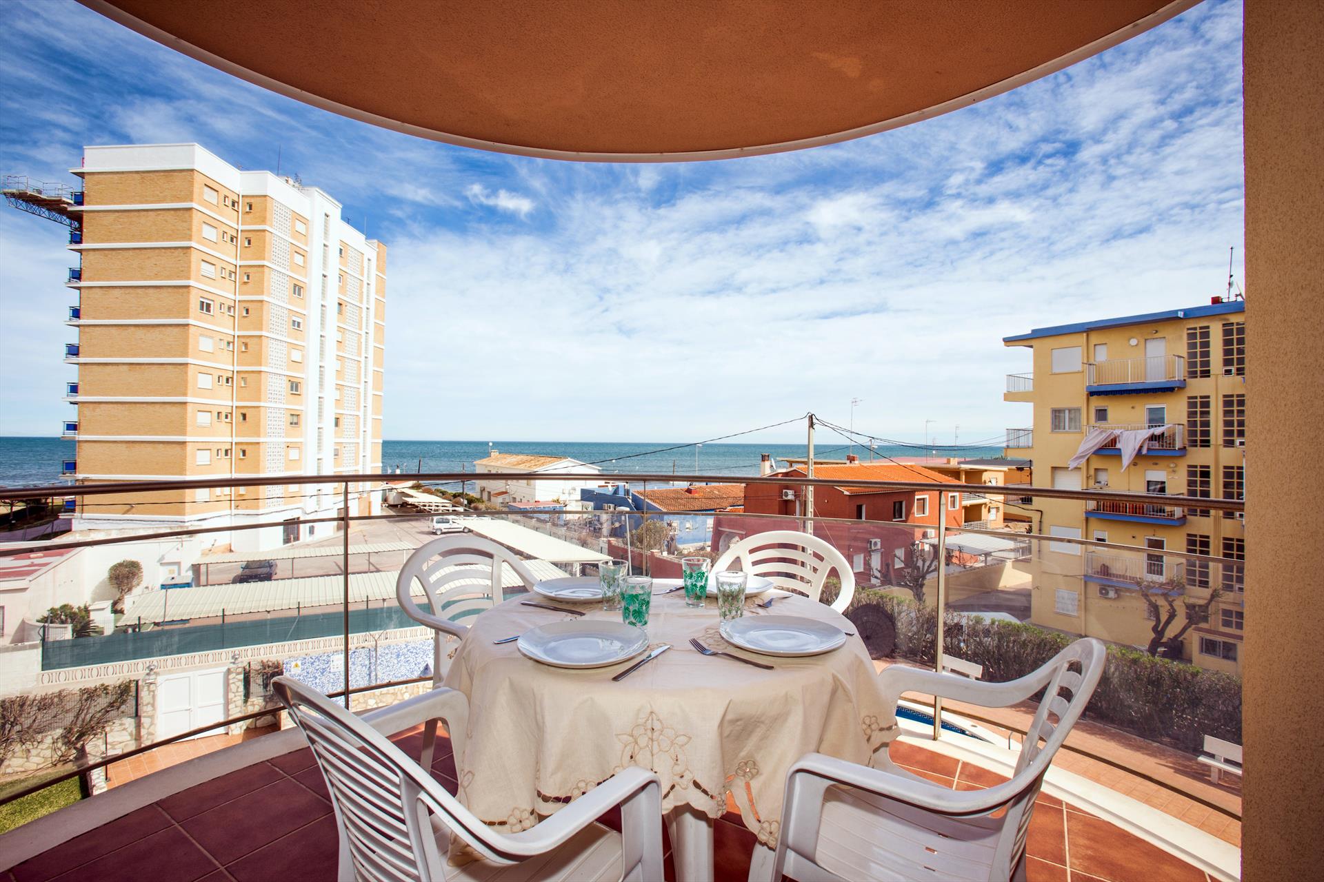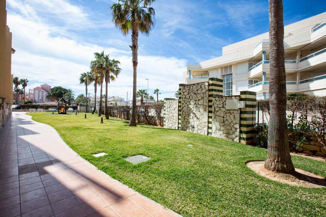 Apartamento en primera línea de playa con vistas al mar. Muy bien situado en complejo muy valorado por los turistas. Todo exterior. Moderno. Muy equipado. Terraza. Garaje. Piscina comunitaria abierta todo el año. Jardín muy cuidado. Zona de juego para niños. Acceso directo a la playa de arena fina. Zona muy tranquila. Mucha privacidad en la playa. Ideal para familias. Todos los servicios cerca: restaurantes, supermercados. Situado en la famosa playa de las marinas muy cerca de Denia. Línea regular de autobús para ir a Denia.