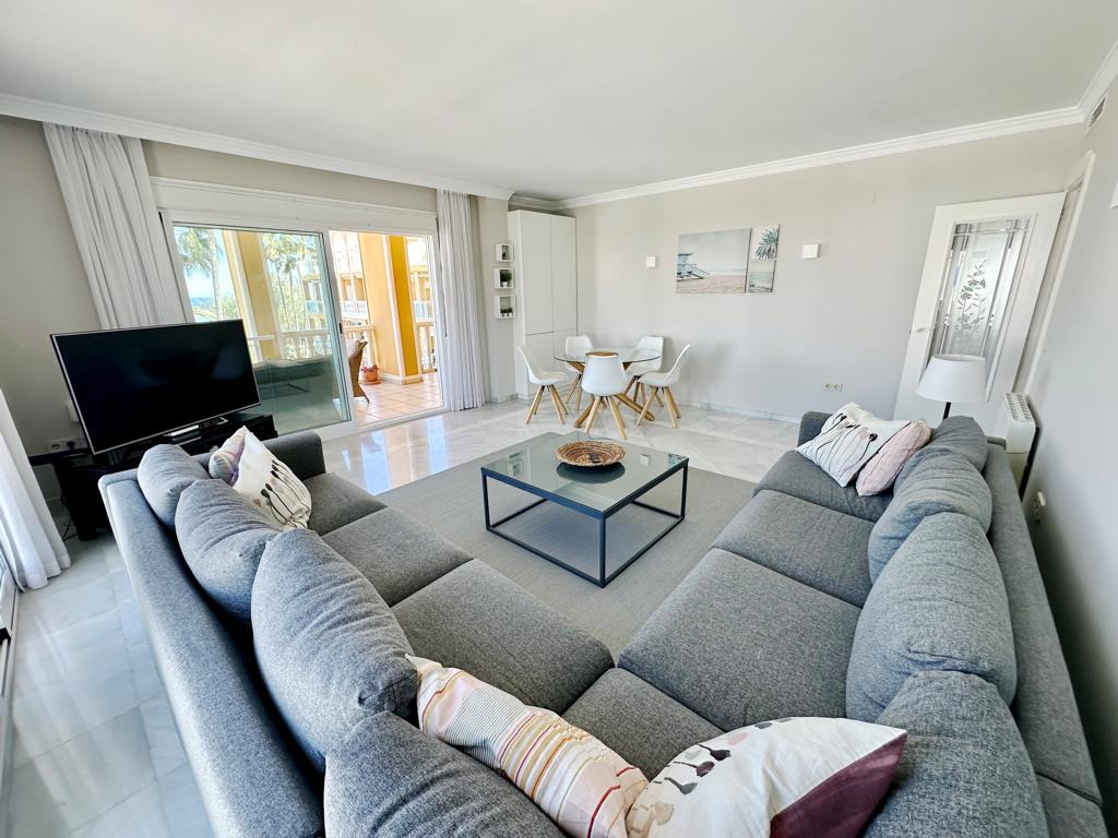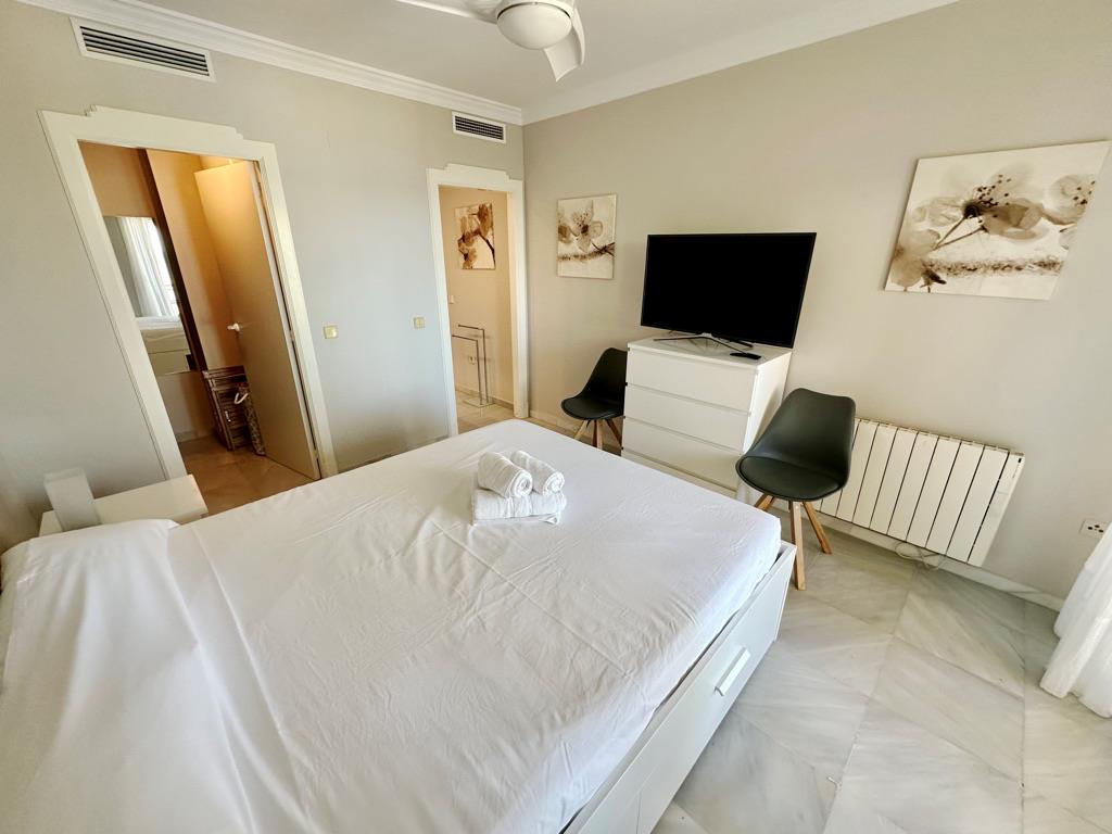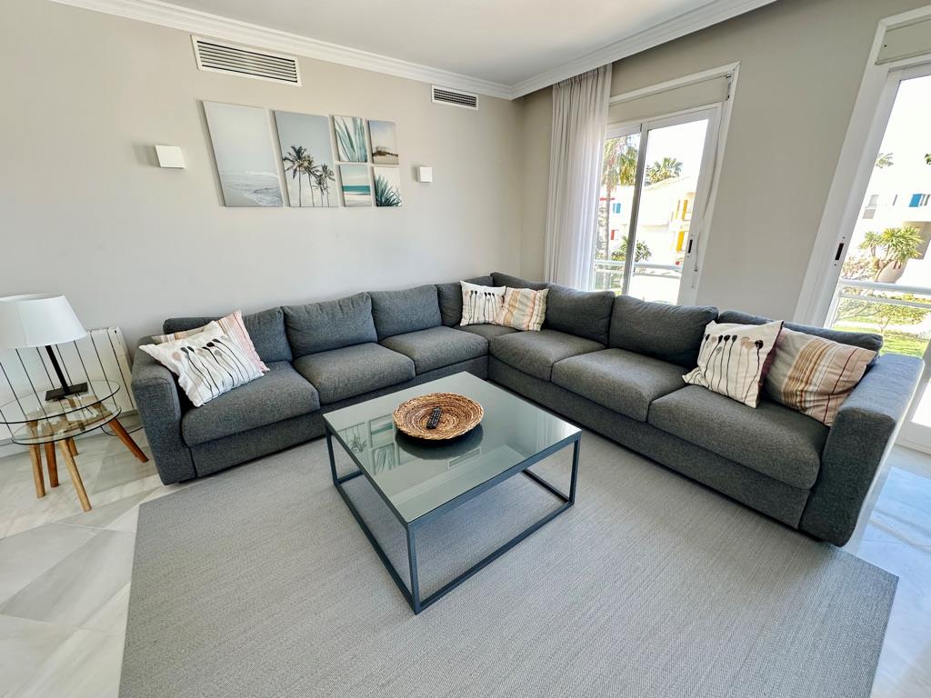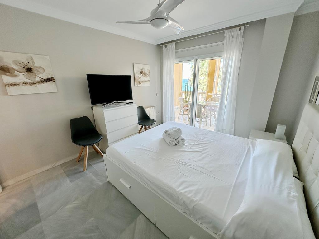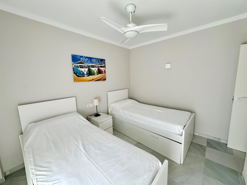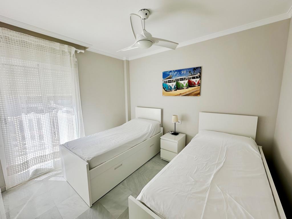 The apartment has 3 bedrooms and 2 bathrooms. The accommodation offers a lot of privacy, a wonderful lawned garden, a lawned communal garden, wonderful views of the bay, the beach, the sea, the pool and the garden and beautiful views of the street and other buildings. Its comfort and the vicinity of the beach, places to shop, sports activities and places to go out make this an ideal apartment to spend your holidays in Spain with family or friends.