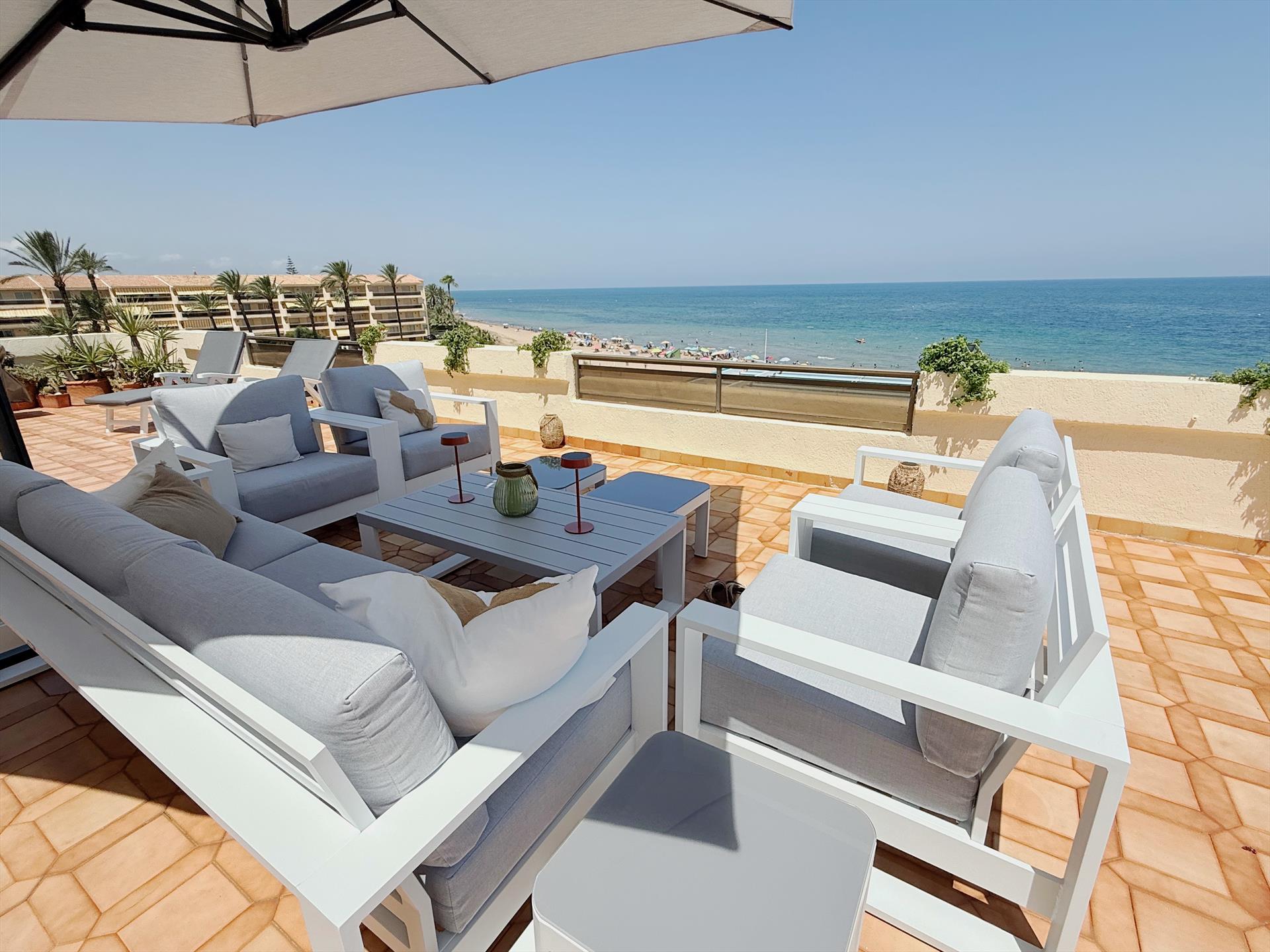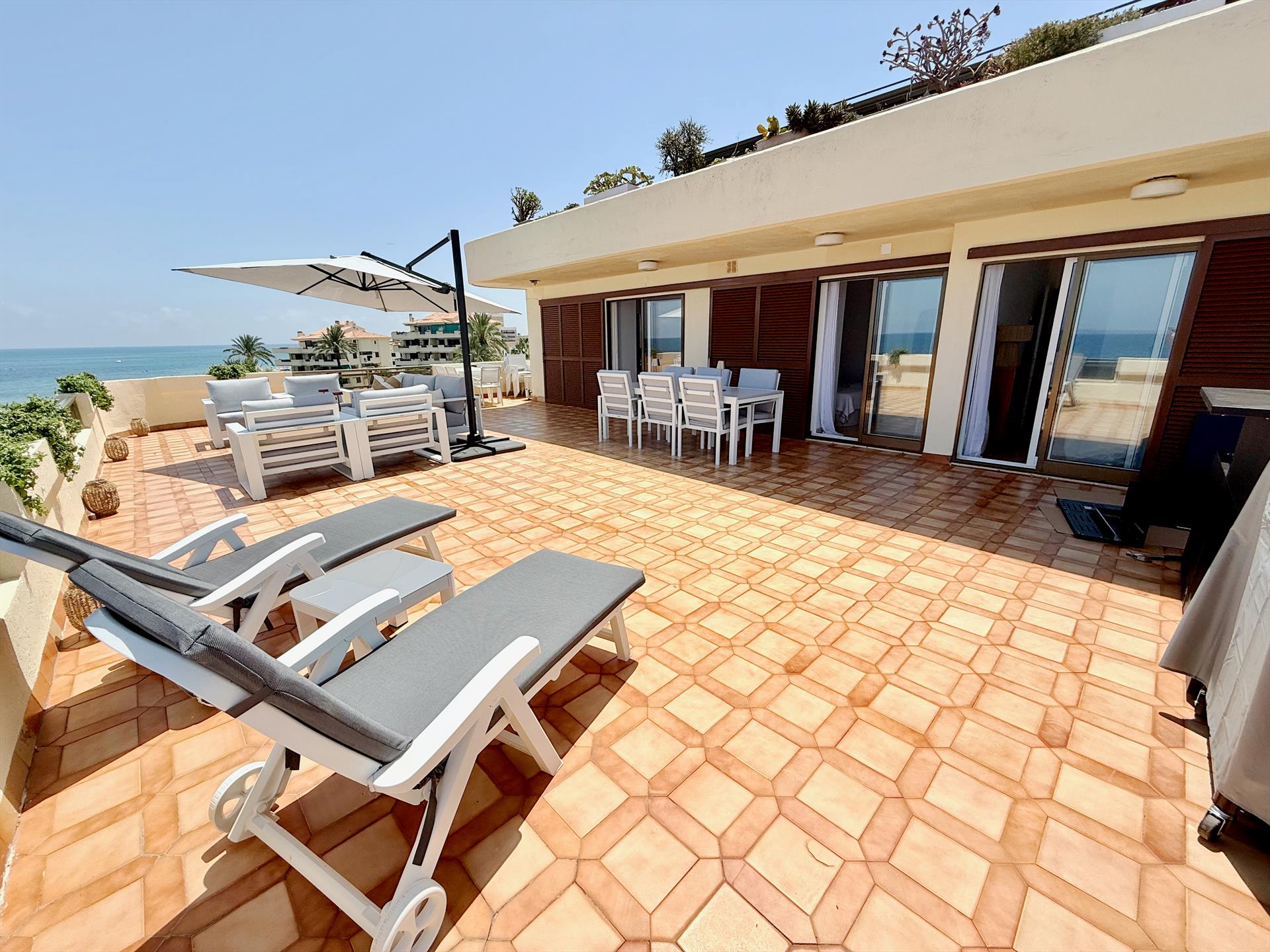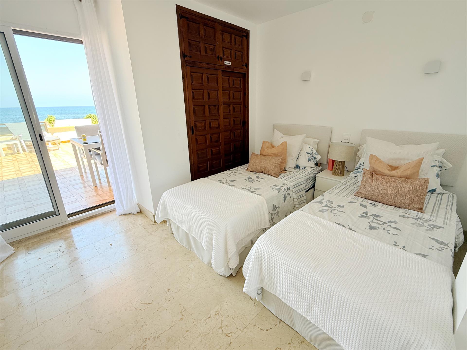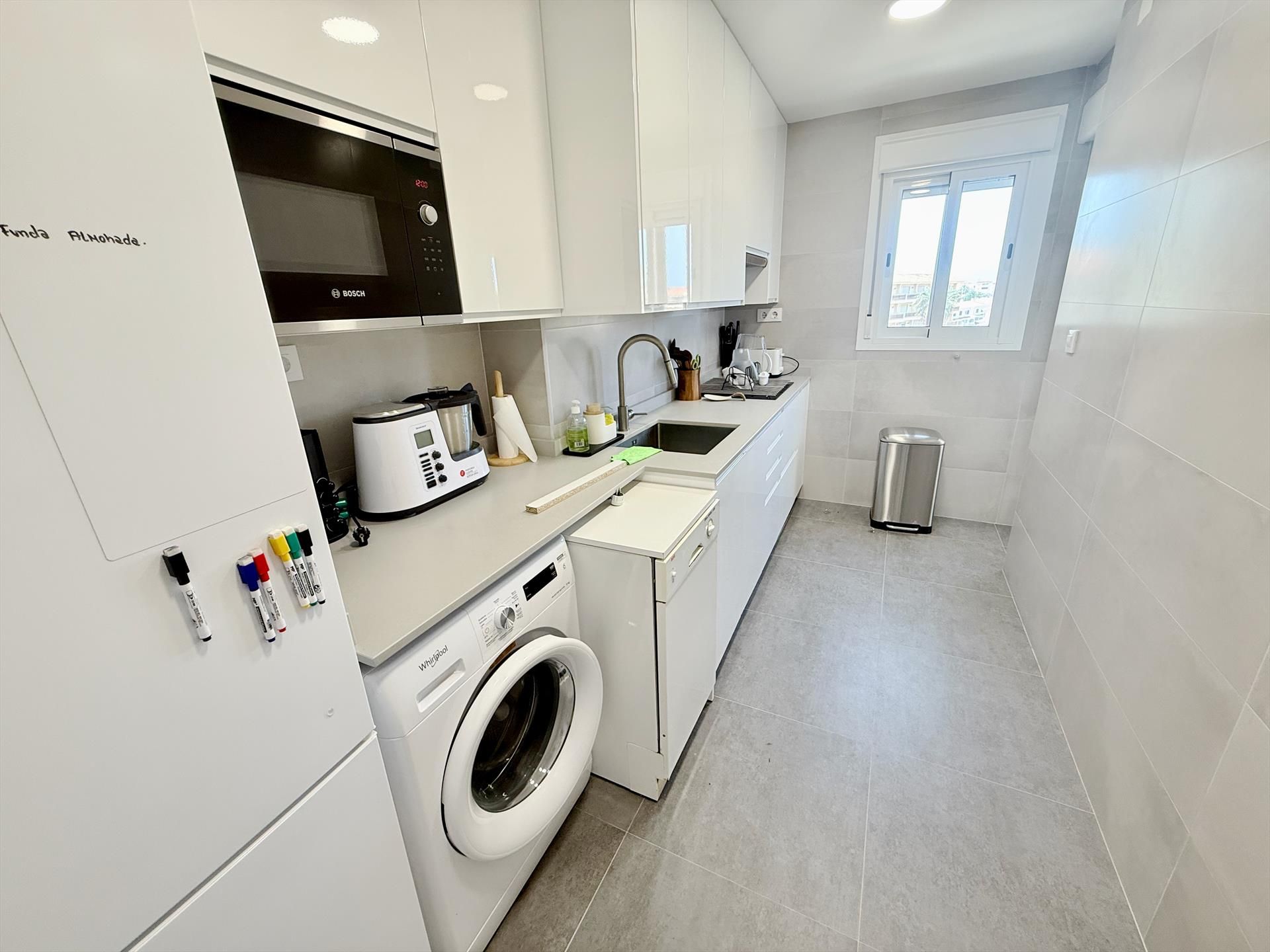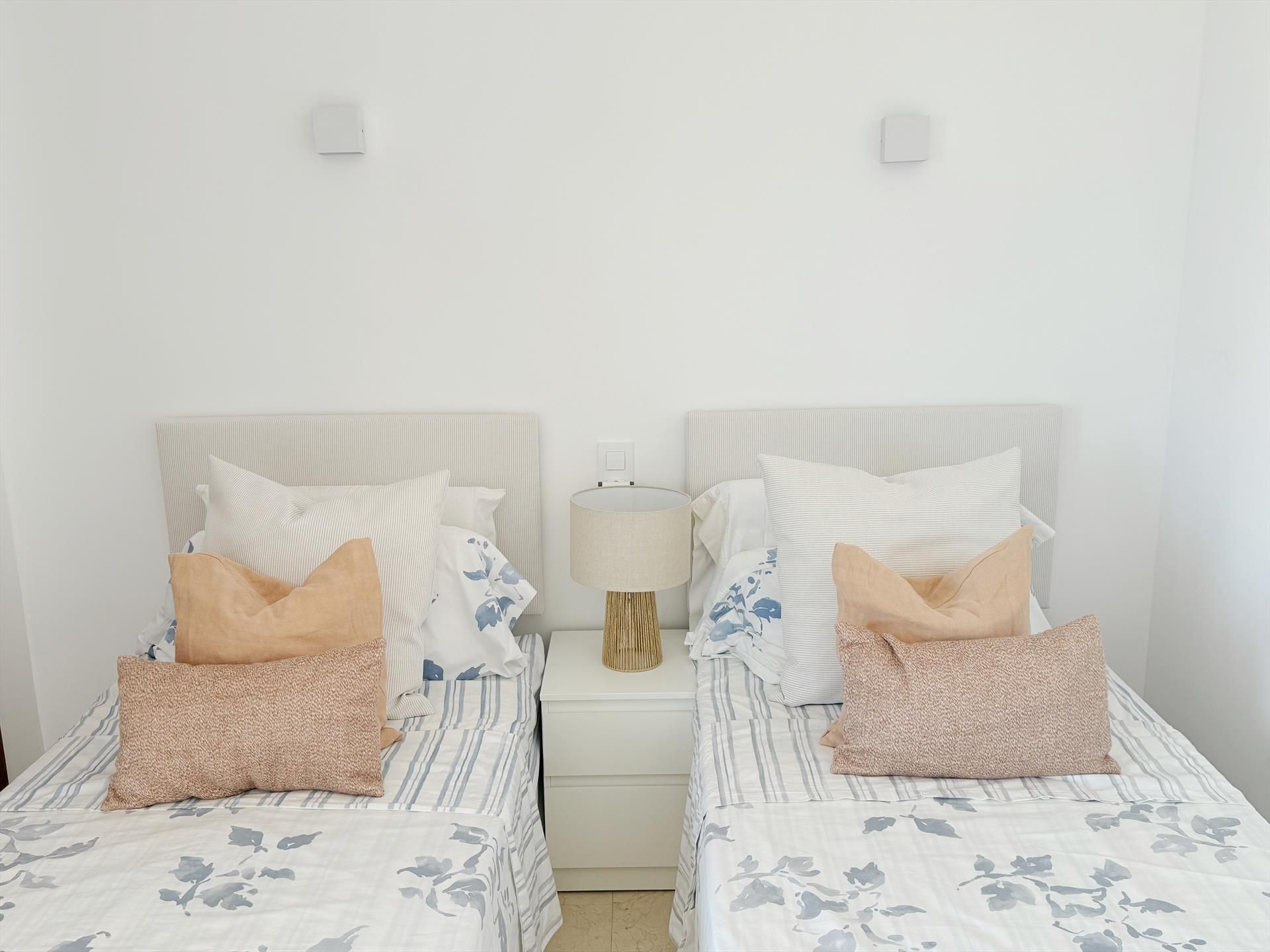 The apartment has 3 bedrooms and 2 bathrooms. The accommodation offers a lot of privacy, a wonderful lawned garden, a communal lawned garden, wonderful views of the beach, the sea, the pool, and the garden, as well as beautiful views of the mountains and the street. Its comfort and the vicinity of the beach, places to shop, sports activities, and places to go out make this an ideal apartment to spend your holidays in Spain with family or friends.