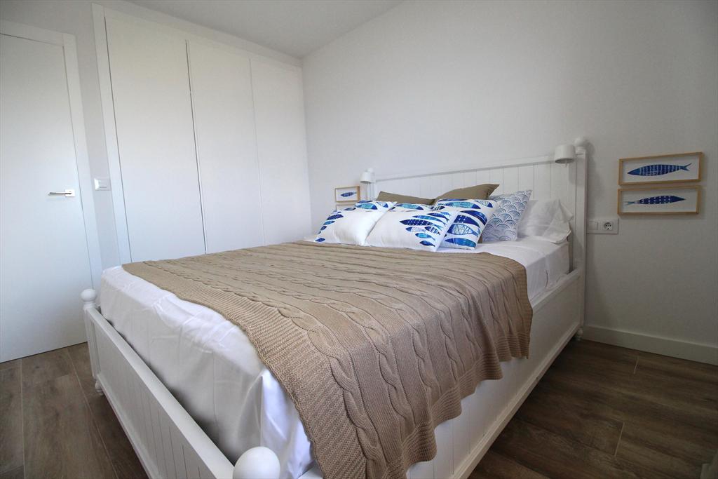 The apartment has 2 bedrooms and 1 bathroom. The accommodation offers privacy, a beautiful lawned garden, a lawned communal garden and wonderful views of the bay, the beach, the sea, the pool, the garden and the street. Its comfort and the vicinity of the beach, places to shop, sports activities and places to go out make this a fine apartment to celebrate your holidays with family or friends.